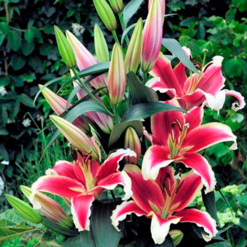 Лилия Flashpoint (Флэшпоинт) – растение, которое может не только похвастаться красотой, но также продемонстрировать и выносливость к разным условиям. Лилия Flashpoint (Флэшпоинт) подобна вспышке, её цветы представляют собой сочетание ярко-розового цвета с нежно обрамляющей белой каймой, которое усилено большим бело-кремовым пятном по центру. Ветка лилии превосходно будет смотреться в срезанном виде, поскольку его цветки, которые в диаметре составляют около 23 см, направлены в стороны. Высота растения, 120-140 см, легко позволяет составить интересную цветочную композицию, а прекрасный аромат вызывает настоящий восторг. Примечательно и то, что гибрид устойчив к заболеваниям и вредителям.