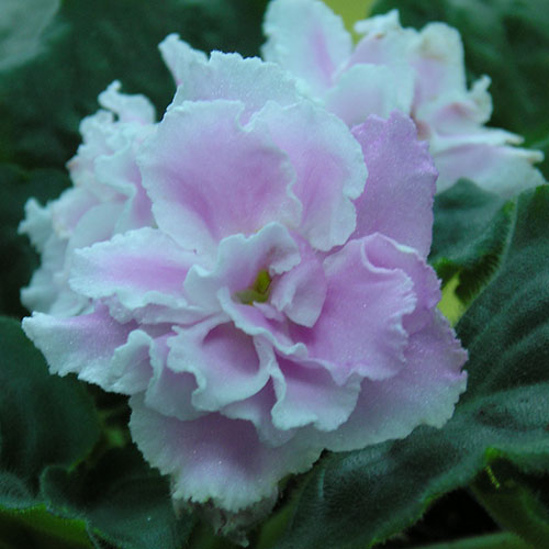 Крупные махровые розовые цветы-шары с широкой белой каймой. Обильное раннее цветение . Зеленая розетка.