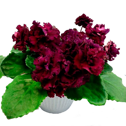 Махровые гофрированные темно-бордовые анютки. Темно-зеленые слегка волнистые заостренные листья.Розетка аккуратная и компактная, чаще всего на цветоносах от пяти бутонов, которые со временем увеличиваются в размере.Цветет АВ-Богема со всех сторон, образуя плотный цветочный шар, напоминающий шапку. Цветы держит долго.После обрывания цветоноса горшочек с растением становится значительно легче.