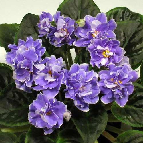 Обилие крупных махровых сине-голубых волнистых звезд с белой каймой роскошным вен..